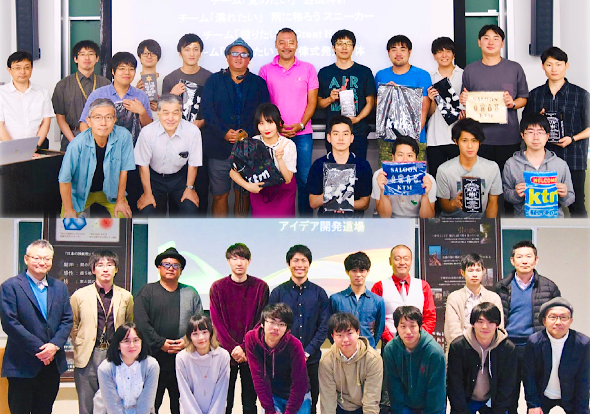 試行「アイデア開発実践」 | 2019年前期・後期 2019年度は、試行プロジェクトとして2つの学内テーマにて実施いたしました。 前期では、雨に移ろうスニーカー・Greet Hand・遊眠時計・自立型発光球体、後期では、大白柱・ARUK・おうちMorningなどのアイデアが出ました。 |